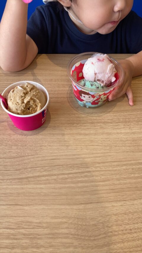 娘はチョコミントにはまり中でいつもはグリコアイス自販機のアイスを食べさせますが、31のアイスはよっぽど美味しいかったのか食いつき度合いは全然違います💦