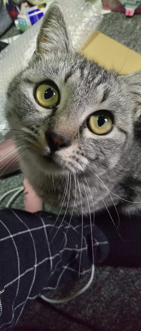 「さばちゃんバイバイ」ってしようとしてたら、なんだか足元に寄ってきて上目遣いで見つめられました。笑