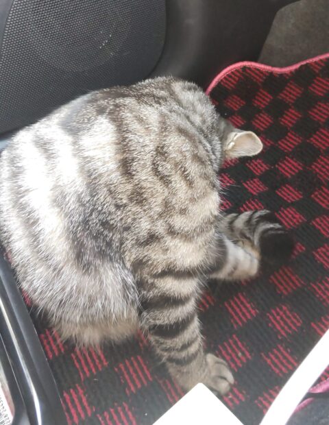 とある休日、家の庭に車を置いておいたら可愛い侵入者が。