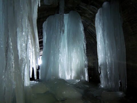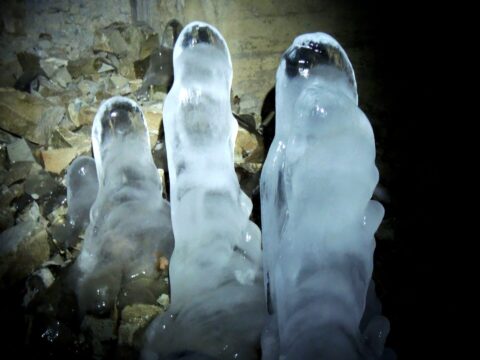 暗闇に輝く氷柱は、どこか畏怖すら感じるほどの存在感があります。