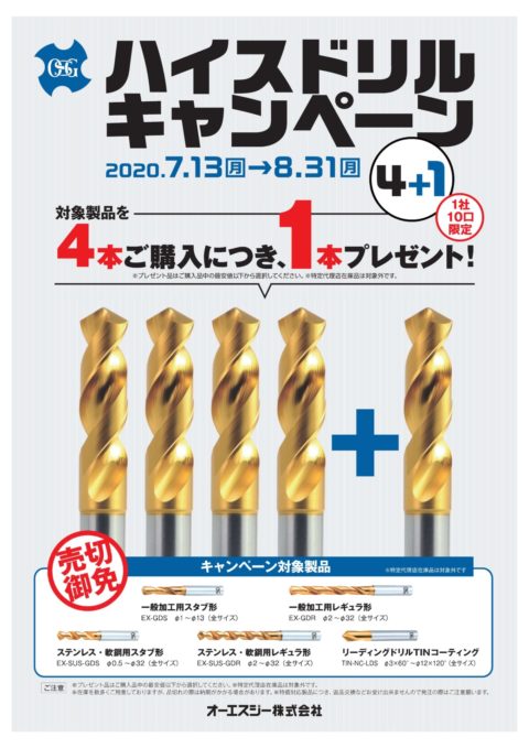 3+1キャンペーンはφ12を超えるドリルサイズが1本でも