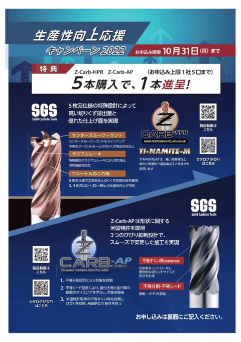 3+1キャンペーンはφ16以上のエンドミルが1本でも